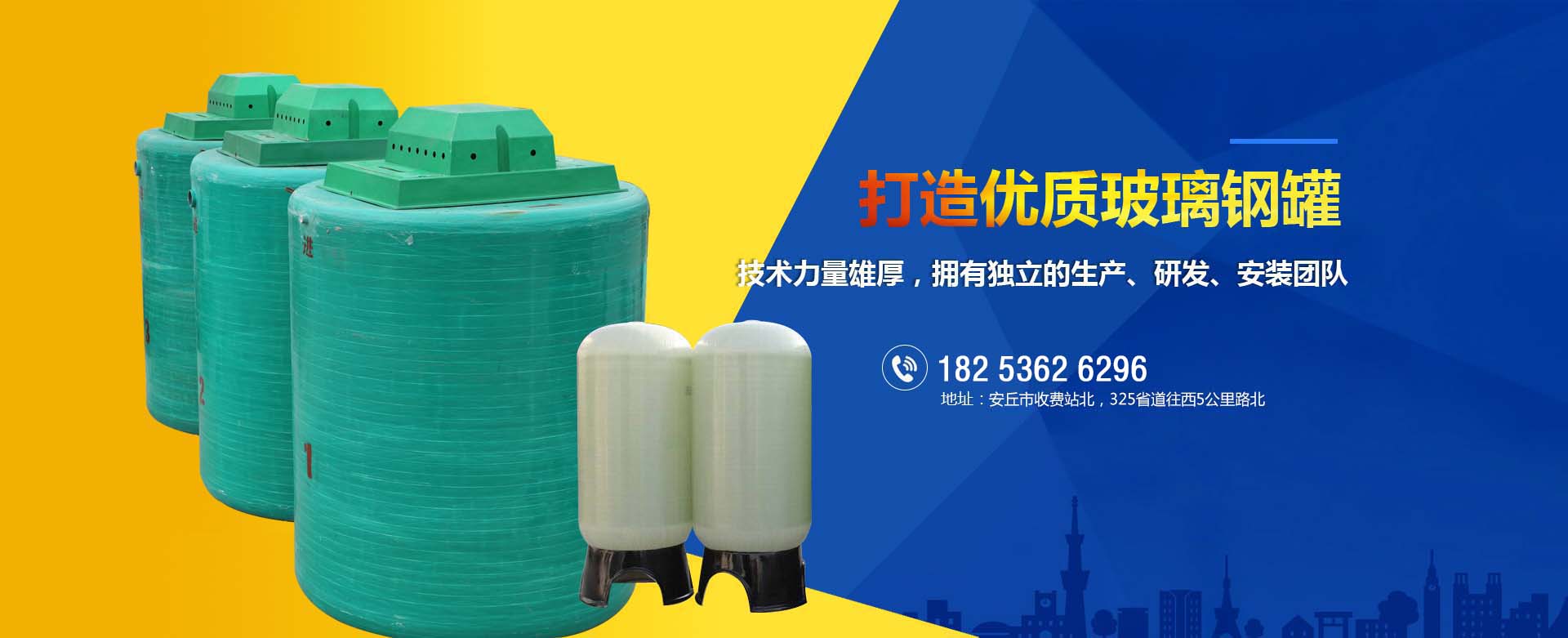 本公司主要生產的產品有:玻璃鋼生物化糞池、污水處理一體化、地埋式消防水池、隔油池、尾氣吸收塔等100多種產品,產品覆蓋20多個省市自治區。